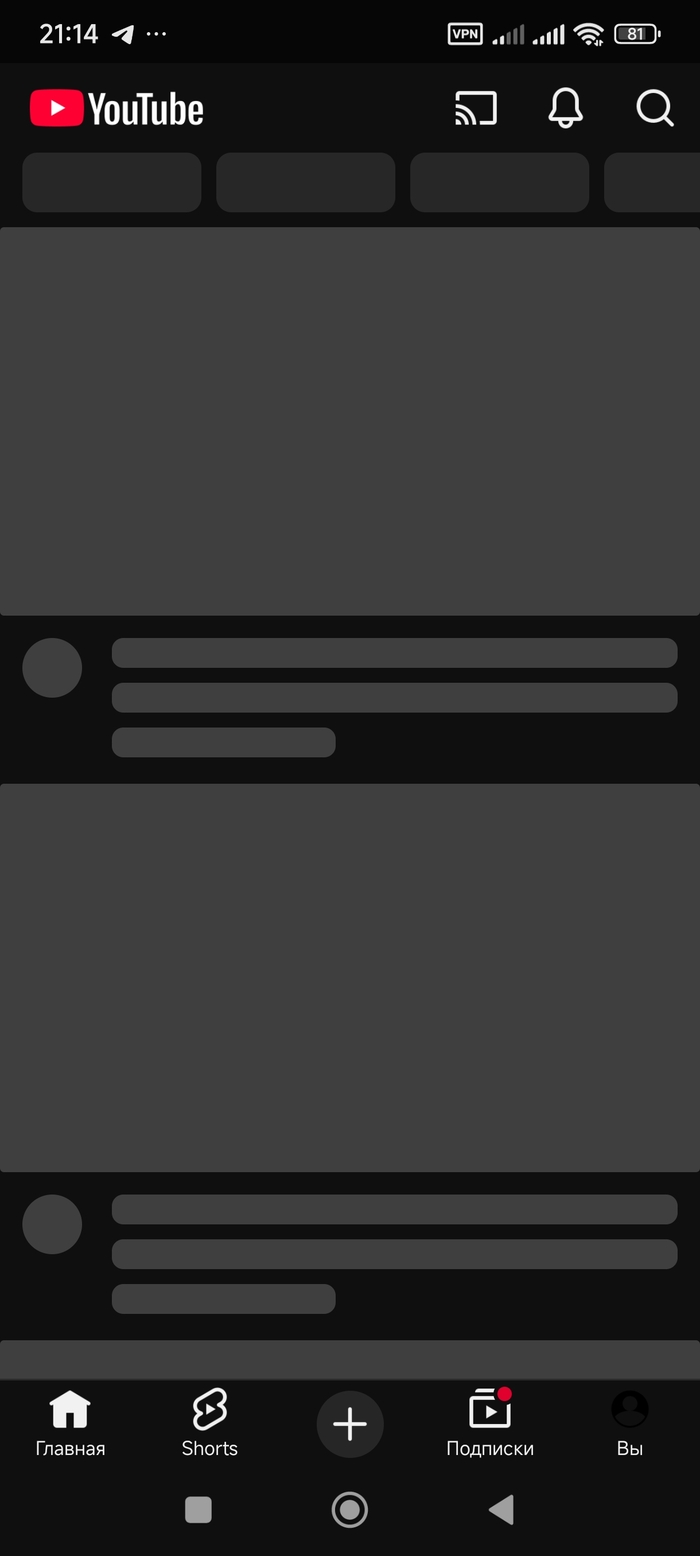 Ютуб работать тоже перестал