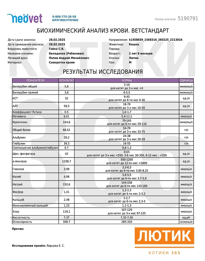 Лютику было не просто. Двадцать бессонных ночей. Постоянные поездки в клинику то на постановку катетера, то на сдачу анализов. Но Лютик всё это мужественно перенёс!