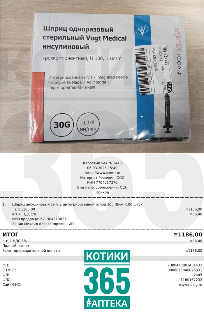 Инсулиновые шприцы для Яши, Аляски и Ромашки.