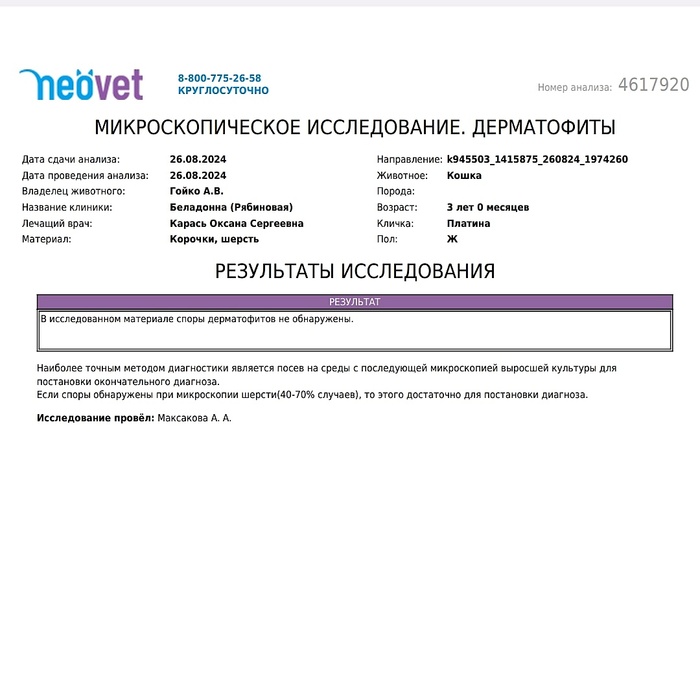 У одного из котят на ухе облысение, сдали анализ на лишай. Отрицательно.