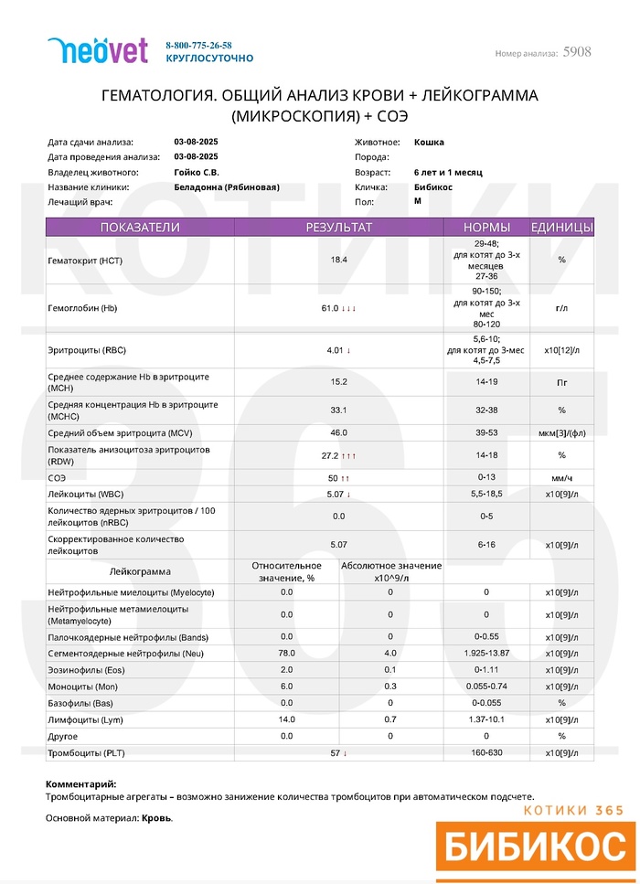 Перед поездкой в клинику Бибикосу дали Успокоин. Так что, поездку и всё процедуры перенёс спокойно.