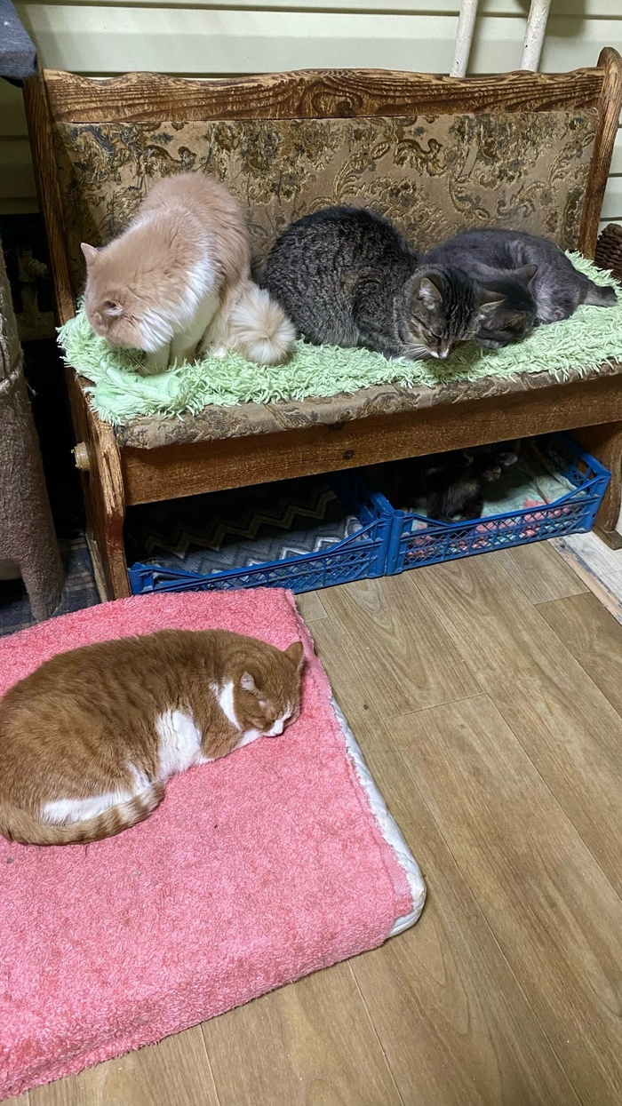 Наши котики в тепле, в уюте, с полными мисками корма. У них все хорошо, но было бы лучше, если их забрали домой.