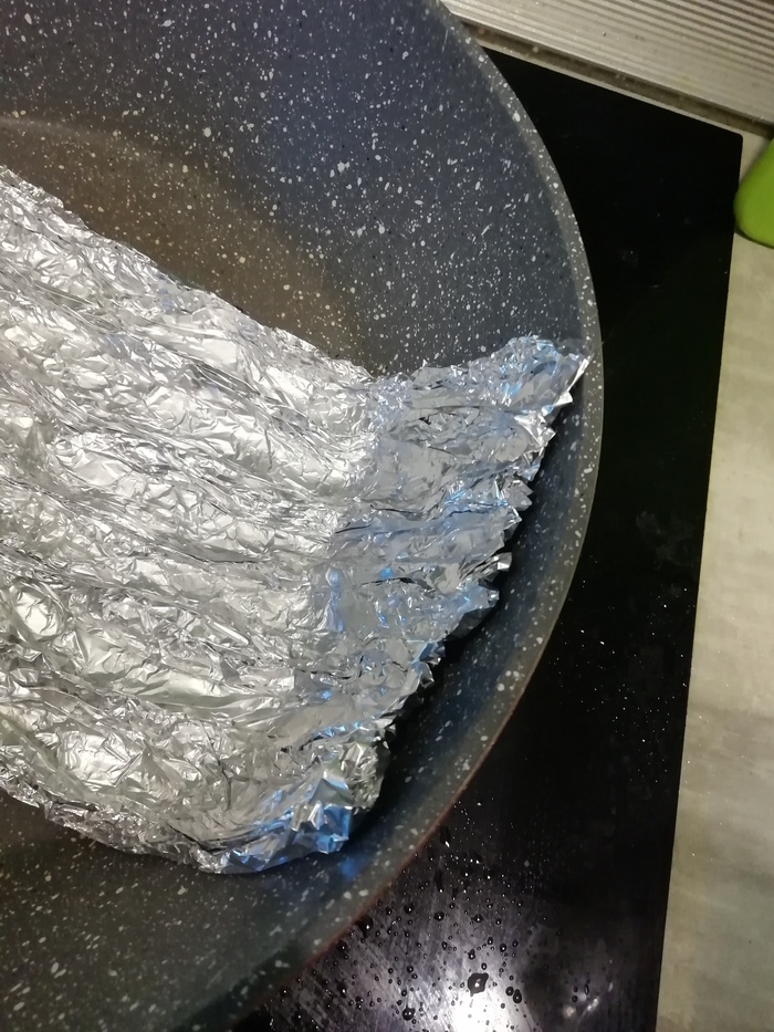 Получилось не очень аккуратно и в последствии практично, (спойлер) под весом купат грани примялись, нужно больше фольги и делать тверже ребра. Фольга с помощью кисти смазывается маслом и в путь.