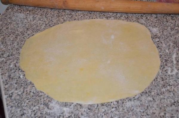 Каждый шарик теста тонко раскатать на присыпанной мукой поверхности.