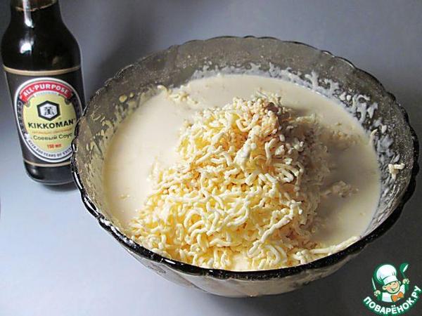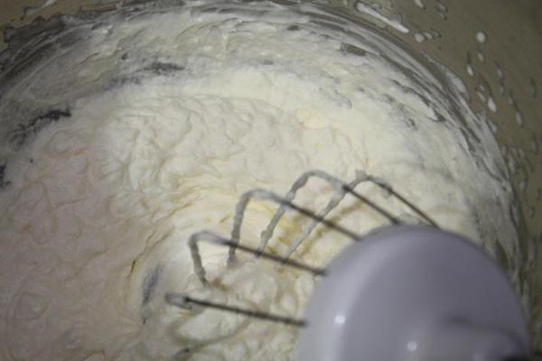 Соединить 4 белка, сахар и орехи.