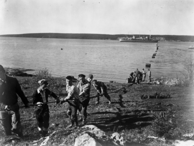 Как говорится, бог любит троицу и с третьей попытки специальному кораблю, на борту которого было закреплено несколько огромнейших бобин довольно тонкого троса, удалось ничего не порвав доставить второй конец в старушку-Европу.
