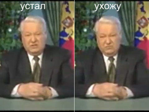 В "Википедии" написано, что не произносил, что это Эффект Манделы. Но, как известно, суть "Википедии" — пиз*ёж и пропаганда. Поэтому я больше верю своей памяти. А я помню, что произносил. Когда обращение вышло в эфир, я был уже достаточно большой, чтобы запомнить. В ту новогоднюю ночь мы смотрели телеканал "ТВ 6", потому что там шёл специальный выпуск программы "О.С.П.-студия". Обращение было встроено в него. Также помню, как позднее кто-то из тогдашних юмористов произнёс: "Я устал, я полежу". И я понял отсылку.