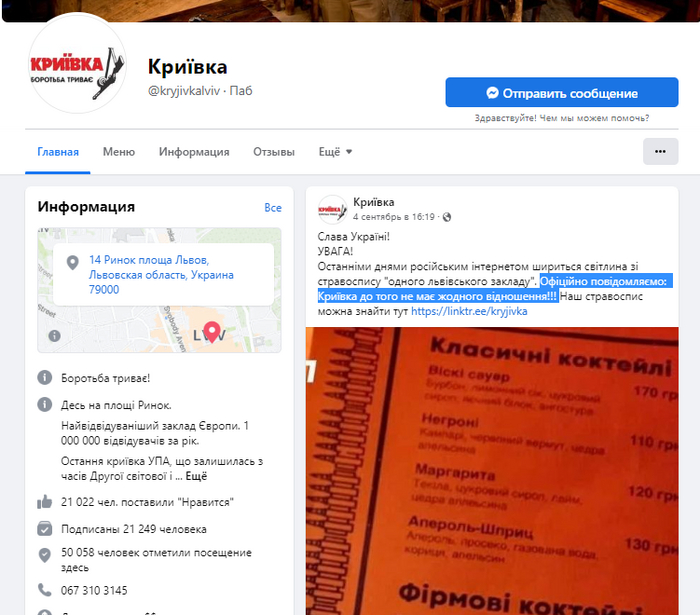 Одно заведение во Львове или о том, как пропаганда вновь старается сделать фейковый образ "страшного украинца людоеда"