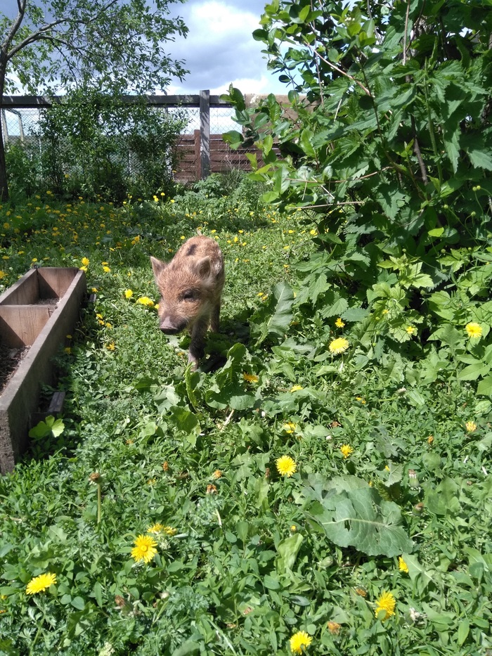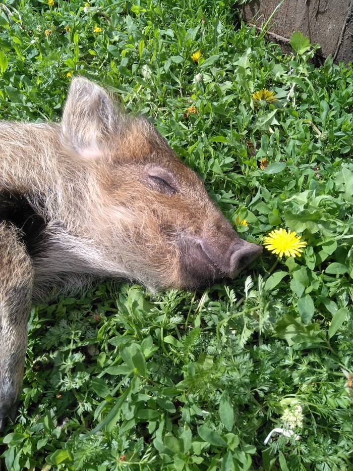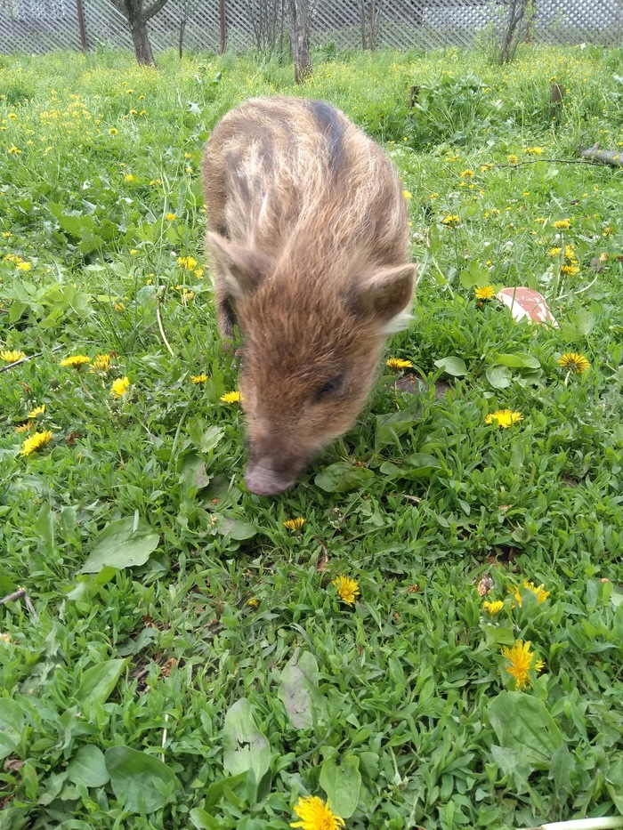 Пятачок) принесли из под мамы ( ручной кабанихи) с диагнозом пупочная грыжа🧐, сказали не выживет, выжила уже и своё потомство дала)