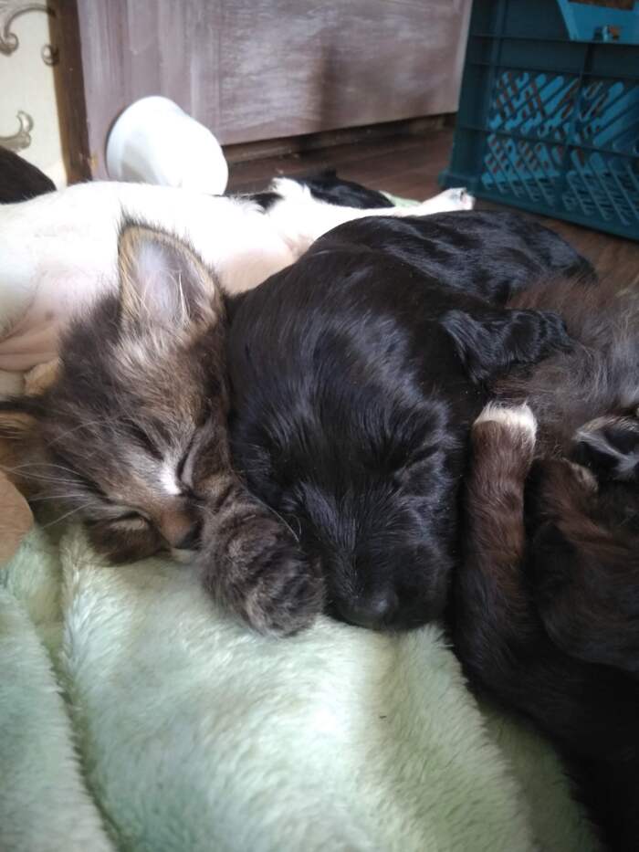 Эти пушистики, так же, по воле случая остались без мамы, жалко, блин стало😭, приютили. Соседи постарались ,знаю куда нести. Для нас не бывают чужих детей😆😉.