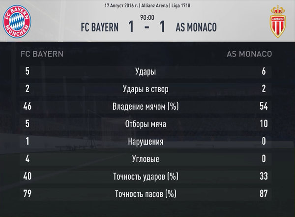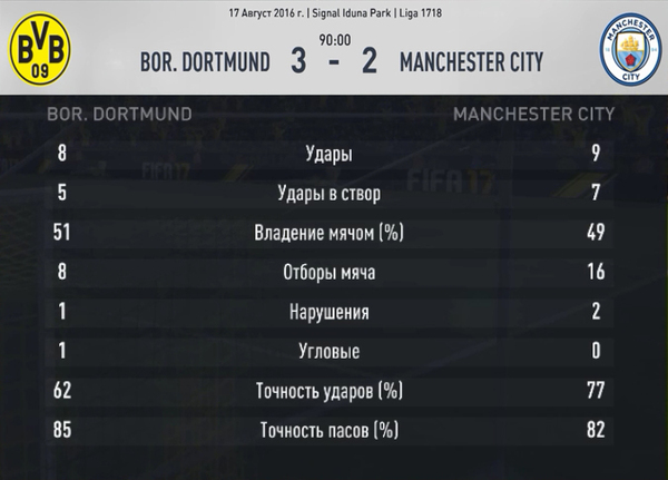 Эти команды в очередной раз подарили нам яркую встречу с обилием голов. Вот только без ничейного результата. Хотя неизвестно, как развивались бы события, если бы не удаление Бернарду Силвы уже на девятой минуте матча. Португалец откровенно срубил Щюррле недалеко от штрафной Боруссии, и судья решил, что этот фол достоин красной карточке. Дортмунд сейчас на ходу, и не трудно было предположить, что в большинстве команда еще агрессивнее станет действовать в атаке. Хотя Монако не привыкать играть в меньшинстве против Боруссии. В прошлом сезоне, при счете 2-0 в пользу немцев, у французов был удален Фабиньо. В итоге, благодаря дублю Вагнер Лава, встреча завершилась вничью, 2-2. Но сегодня удача была явно на стороне гостей. Особенно выдающуюся встречу провел Кастро. Именно он на 15-ой минуте совершил отбор в центре поля и начал первую голевую атаку. Мяч от него получил Щюррле и выверенным пасом вывел на ударную позицию Вайгеля. А тот, в свою очередь, умедрился из выгоднейшей позиции попасть в штангу. Но, как я уже говорил, Боруссии в этот вечер фартило по максимуму. Мяч от штанги отскочил точно к Обамеянгу, которому не составило труда добить его в пустые ворота. Не прошло и пяти минут, как гости соорудили еще одну голевую атаку. Кастро на этот раз сам убежал один на один с голкипером и элегантным «черпачком» перекинул бросившегося на перехват Субашича. Но и это было не все. Еще пять минут потребовалось немецкой команде, чтобы забить третий гол. И вновь отличился Кастро. Сперва он точной передачей нашел в штрафной Монако Обамеянга. Форвард принял мяч, мгновенно развернулся и «шведой» пробил в ближний угол. Субашич с прыжком опоздал, но мяч угодил в штангу и отскочил вдоль лицевой линии, собираясь уйти в аут. Однако, Ройс не позволил ему это, первым же касанием вернув круглого в штрафную, где на линии вратарской уже стоял абсолютно один Кастро, который шикарным ударом через себя вколотил снаряд под перекладину. На этом Боруссия решила временно успокоиться и даже позволила Монако отквитать один мяч. Защитники немецкой команды решили сыграть, как в первых турах, в результате чего Мбаппе без помех вошел в штрафную Бюрки и закатил мяч в ворота. Второй тайм получился менее богатым на события. Уже на 57-ой минуте установился окончательный счет в матче. Кастро продолжал властвовать в центре поля. Вместе с Ройсом они отобрали мяч у зазевавшегося Фабиньо и вывели на ударную позицию Обамеянга. И вновь первый удар форварда отразил голкипер. И вновь мяч отскочил к нападающему Боруссии. Монако имело несколько неплохих шансов сократить отставание в счете, но не воспользовалось ими. А под занавес встречи травму получил Ройс. Пока неизвестно, на сколько он выбыл из строя, но ясно, что это ощутимая потеря.