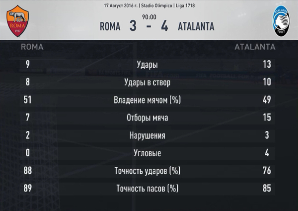 Атлетико в двух последних матчах потерял важные очки, пропуская голы на последних минутах. Чтобы избежать нервной концовки, «матрасники» попытались сразу пойти вперед и забить как можно больше. План был исполнен наполовину. То есть, атаки у них проходили, а вот с реализацией была беда. Чего стоит эпизод Гризманна на 14-ой минуте, когда Бериша спас свою команду от двух ударов в упор. Не прошло и десяти минут, как эта оплошность аукнулась испанской команде. Все началось с неточного паса Сауля вблизи своей штрафной. Кессье перехватил передачу и покатил круглого Куртичу под удар. Габи в отчаянном подкате смог выбить мяч из-под ног словенца, но первым на подборе вновь был Кессье. В этот раз он решил пробить сам и вогнал снаряд точно в правый верхний угол ворот. Этот гол выбил гостей из колеи, и они, за первый тайм, ничего путного так и не создали. А вот хозяева могли отличиться, и не раз. Яну Облаку пришлось потрудиться, чтобы отразить удар Гомеса в ближний угол. А Куртичу не хватило пары сантиметров, чтобы мяч попал в сетку, а не в штангу. И все-таки до перерыва второй гол случился. При подаче углового у ворот Атлетико судья усмотрел нарушение в действиях Коке и Габи и назначил пенальти, который уверенно реализовал Гомес. Если кто-то думал, что этот гол окончательно сломил дух Атлетико, то он заблуждался. После перерыва испанцы прибавили в движении и концентрации, и у ворот Аталанты стало гораздо жарче. Однако, мяч в ворота Бериши так и не шел. Впрочем, как и в ворота Облака. Итальянцы продолжали искать счастье у чужих ворот, и у них порой проходили неплохие атаки. И все же Атлетико забил. Невольно поучаствовавший в голах в свои ворота Габи, разыграв несколько раз «стенку» с Гризманном, по правому флангу атаки дошел до штрафной Аталанты. Затем француз, собрав на себя двух соперников у угла вратарской, сумел-таки протолкнуть мяч на открытого Габи. Его удар под самую перекладину стал единственным не берущимся для Бериши в этот вечер. Больше такой вольности в своей штрафной игроки Аталанты не позволяли. Матч так и закончился со счетом 2-1, и итальянцы вновь оказались сильнее испанцев.