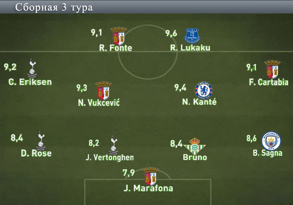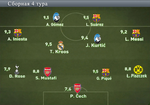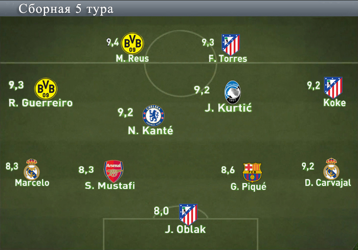 Представляем символическую сборную девятого тура, составленную по оценкам FIFA 17: