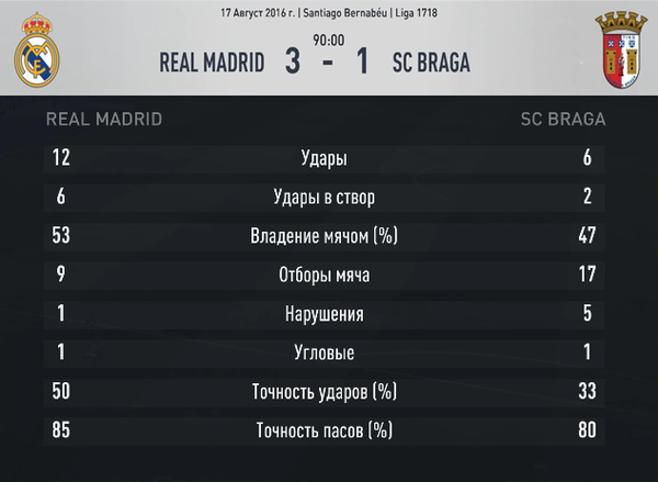 Для Браги игры с английскими командами являются пока что главными поставщиками очков, 7 из 11. Вот только Сити еще по отборочному турниру показал, что португальцам кровь они попортят. По первым минутам стало понятно, что такой свободы действий, какая была у игроков Браги в матчах с Эвертоном и Арсеналом, сегодня ждать не придется. «Горожане» сразу захватили контроль над мячом и стали подбираться все ближе и ближе к воротам Марафоны. Однако, точными ударами их атаки похвастаться не могли. Практически все мячи, идущие в створ, становились добычей голкипера. У Браги шансов отличиться было и того меньше. За весь первый тайм только Сантос смог выйти на ударную позицию, обокрав в штрафной Сити Стоунза. Но его удар прошел рядом со штангой. Второй тайм активнее начала Брага, Баттилья даже отметился попаданием в штангу. Но в итоге произошло то, к чему все и шло. Манчестер Сити отобрали мяч на своей половине поля и убежали в контратаку. Сане протащил круглого по левому флангу и, транзитом через Агуэро, перевел снаряд на противоположный край, куда своевременно подключился Стерлинг. Англичанину оставалось лишь разобраться с голкипером, что он и сделал. Спустя несколько минут после такого радостного для «горожан» события, произошло нечто трагичное. Травму получил один из главных придумщиков английской команды, Де Брюйне. Заменить его был призван Гюндоган, и он с этой задачей справился сполна. В первой же атаке с его участием Гюндоган смог забить. Гол должен был состояться на несколько мгновений раньше, после классного навеса Агуэро и не менее классного удара Сане, но вратарь непостижимым образом смог отразить мяч в каркас ворот. Вот только защитники не смогли его поддержать и вынесли снаряд точно в ноги Гюндогану, да еще и позволили немецкому турку нанести точный удар. Брага рук не опускала и даже смогла отквитать один мяч. Сделал это конечно же их капитан и вожак, Сантос. Но на большее, к сожалению, их не хватило, и в самой концовке встречи хозяева поля вновь поймали соперника на контратаке. Агуэро вывел разыгравшегося Гюндогана один на один с голкипером, а тот, не пожадничав, в свою очередь отдал голевой пас Фернандиньо вообще на пустые ворота. Таким образом, можно поздравить Гюндогана с успешным дебютом в сезоне в составе Манчестер Сити и первыми результативными действиями. А Браге стоит отметить, что не все английские клубы одинаково полезны.