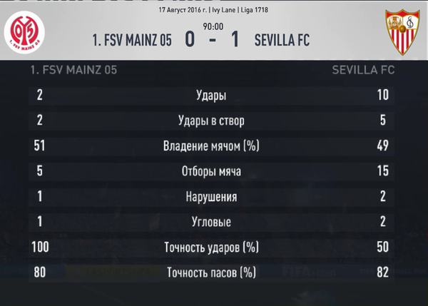 Учитывая турнирное положение команд, вполне ожидаемым был бы разгром гостей. Но этого не произошло. Возможно, причиной тому послужило отсутствие в составе хозяев Эриксена. Безусловно, датчанин вносит огромный вклад в атакующую игру «шпор». Но в матче прошлого тура он получил повреждение, в результате которого был вынужден пропустить нынешнюю встречу. Заменивший его, Онома продержался недолго. Уже на десятой минуте он получил травму и вместо него на поле появился Сон Хын Мин. И именно корейцу суждено было определить итоговый результат встречи. По истечении получаса игры, в ходе очередной атаки Тоттенхема, когда игроки Майнца не смогли организовать достойный вынос мяча от своих ворот, Сон получил снаряд и прекрасным ударом направил его с линии штрафной точно в дальний угол. Лессль, которому у приходилось в этой встрече отражать удары корейского форварда, на этот раз оказался бессилен. Но если не брать в расчет эпизод с голом, отстоял немецкий голкипер очень даже неплохо. Чего только стоит его бросок в ноги Кейна за пять минут до перерыва. Для Майнца ситуация осложнилась еще и тем, что в конце первого тайма травму получил главный нападающий, Кордоба. Без него творить атаки остался одинокий Боян, и хотя моменты все-таки периодически возникали, реализовать он их так и не смог. Вышедший после перерыва Муто, равноценно заменить Кардобу так и не смог. Команды продолжают свои рекордные серии, Тоттенхем – беспроигрышную, Майнц – без выигрышную, и единолично занимают первые строчки таблицы. Сверху и снизу, соответственно.