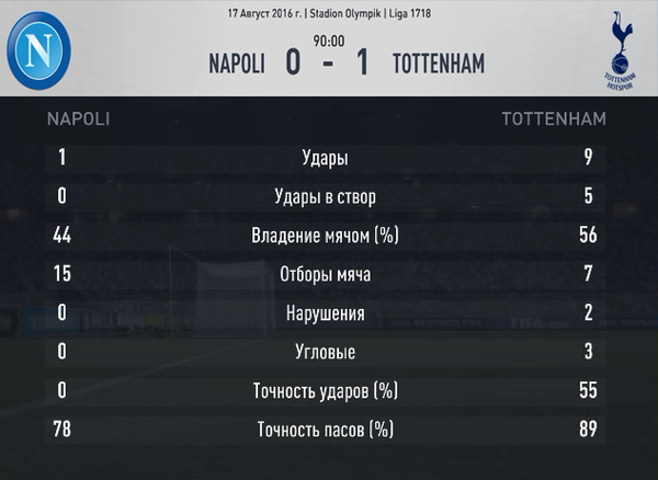 Учитывая предматчевые расклады, Челси, видимо, заранее отпраздновал победу. И Наполи воспользовался этой расслабленностью. Хозяева поля уверенно захватили мяч, не позволяя гостям подолгу им владеть, и проводили свои, весьма опасные атаки. Но, до поры, до времени, создать что-то результативное у них не получалось. Очень старался отличиться Мертенс, и был близок к этому на 29-ой минуте встречи, но Куртуа в последнее мгновение смог перевести его удар в штангу. Но через пять минут голкипер был уже бессилен. Кальехон выполнил навес в штрафную Челси, мяч заметался среди игроков, и в этой ситуации расторопнее всех оказался Хамшик, который и катнул сферу точно в угол ворот. Самое главное, что после забитого мяча неаполитанцы не остановились, а продолжили наседать на ворота лондонцев. Еще до перерыва Куртуа не дал Хамшику оформить дубль, отразив его мощный удар с линии штрафной. Однако, второй гол все-таки случился. Подключившийся к атаке Гулам, собрав на себя несколько соперников, пяткой откатил мяч одинокому Аллану, который с десяти метров «расстрелял» Куртуа. После перерыва Челси заиграл гораздо активнее, но к голу все равно были ближе игроки Наполи. Так на 52-ой минуте Инсигне подкараулил ошибку Алонсо, перехватил мяч, протащил его до штрафной гостей, попутно обыграв пару-тройку соперников и выдал пас под удар Мертенсу. Бельгийский форвард с лета пробил мощно и точно в перекладину. А за двадцать минут до конца встречи свое слово сказал другой бельгиец. Азар, как будто очнувшись ото сна, смог наконец-то убежать от защитников Наполи и пробить, правда со второй попытки, Рейну. Спустя пять минут он же мог сравнять счет в матче, но первый его удар так же пришелся в голкипера, а второй возможности добить мяч он не получил. Таким образом, Наполи смог прервать шестиматчевую серию сухих поражений, а Челси упустил шанс подняться в первую десятку и продолжает находиться в опасной близости от зоны вылета.