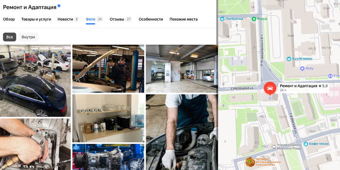 Ого! Рядом аж 4 автосервиса с оценками 5 звёзд и фотками