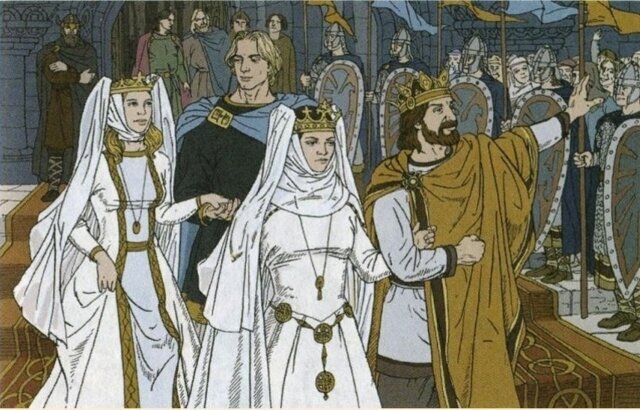 Ясен-красен, королю такое не по нраву. Он слегка злится и ворчит, но что характерно - с первого взгляда угадывает, кто из этой компашки та самая женщина-мечта. Удивительно все-таки была развита интуиция у героев рыцарских романов!