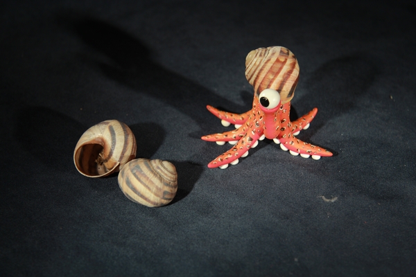 Надо сказать, что лапсы у Нюхи загребущие, а творческий дух - вечно кипуч. Так что, стоит ей заполучить в эти самые лапсы новый материал, немедленно начинается разработка нового жанра. В этот раз ей досталась в руки горстка ракушек - и понеслась...