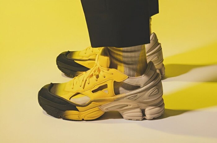 Стэны – одна из самых популярных пар adidas, поэтому мы не удивлены, что Раф поработал и с ними. Конкретно в этой паре он решил чуть-чуть поиздеваться над нами. Он сделал модель adidas Stan Smith так, словно это adidas Samba. Получилась своеобразная метаирония.
