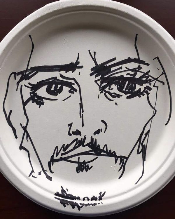 Автопортрет на бумажной тарелке от Джонни Деппа