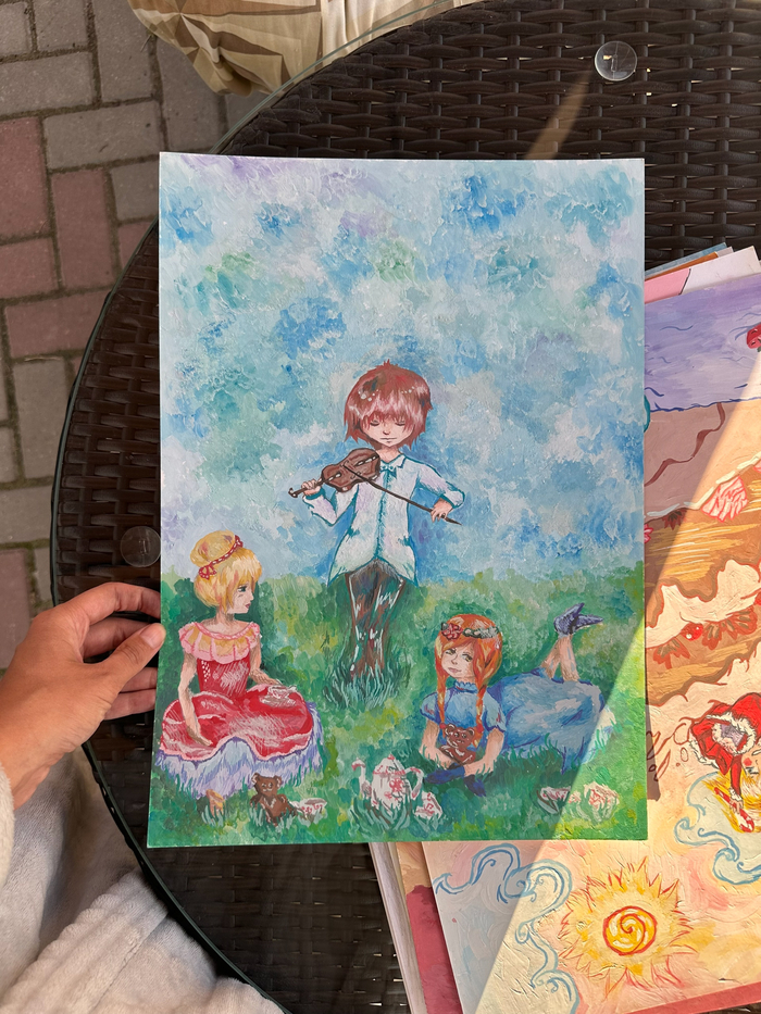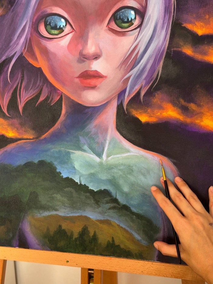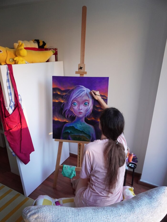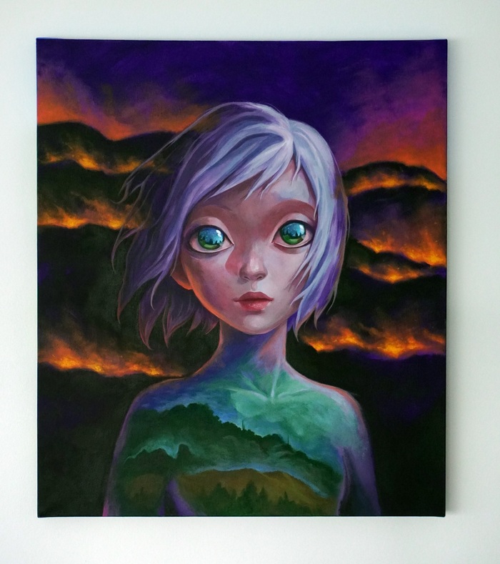 Прекрасно понимаю, что мой околомультяшный стиль прям сильно на любителя, да и к тому же не было практики написания на холстах более 10 лет, но стала рисовать прям с удовольствием в первую очередь для себя. Пока другие традиционные авторы не сказали: «Кристин, а ты ищи open calls для художников! Пробуй, подавайся!»