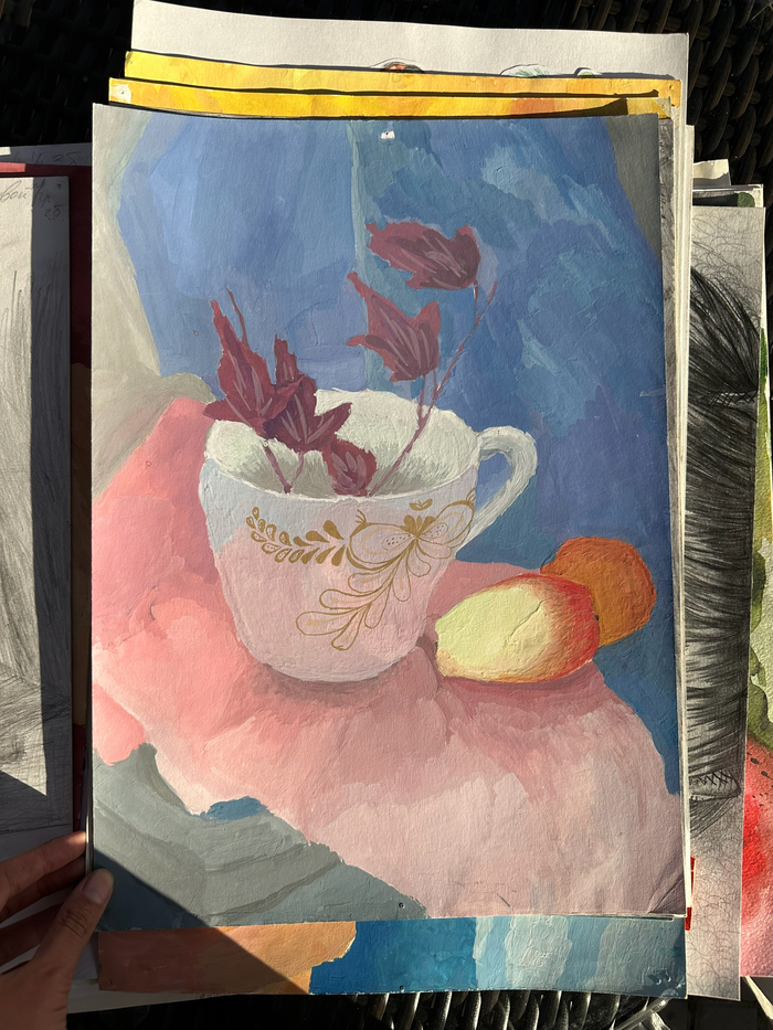Для выставки на Кипре, которая посвящена природе и экологии острова, подготовила картину на социальную тему, прошедших пожаров в 2025 году.