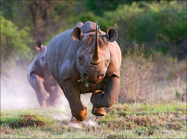 4) В скорости передвижения черный африканский носорог не уступает лошади и может развивать скорость до 40 км/ч.