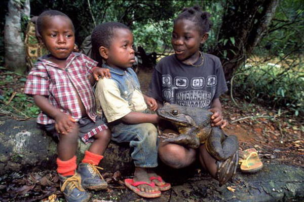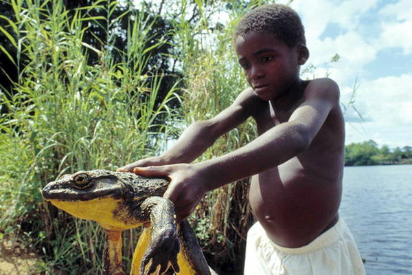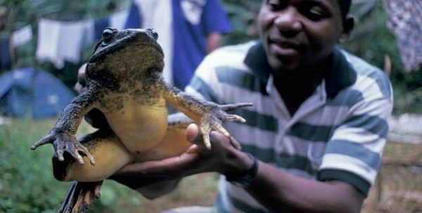 Самая большая лягушка в мире - лягушка голиаф (Conraua goliath)