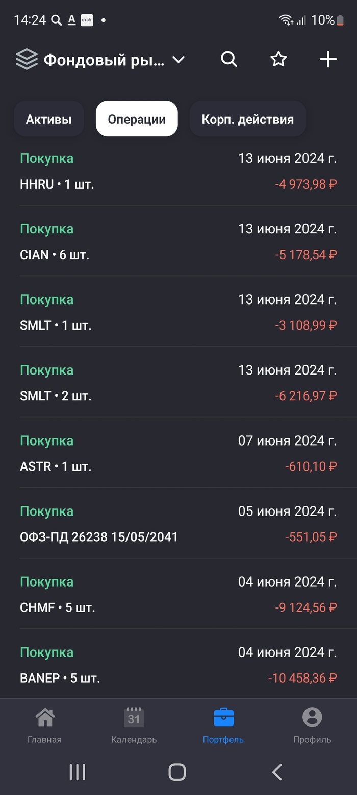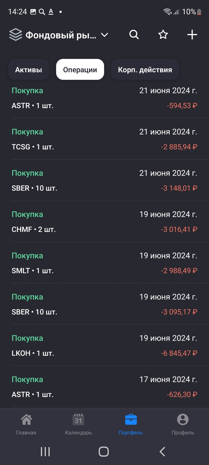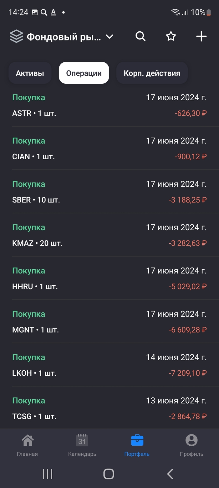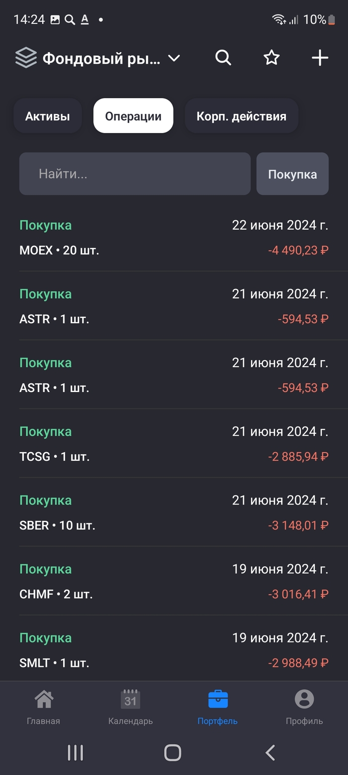 Полный список покупок за июнь с котировками смотрите ниже на скриншоте из Snowball.