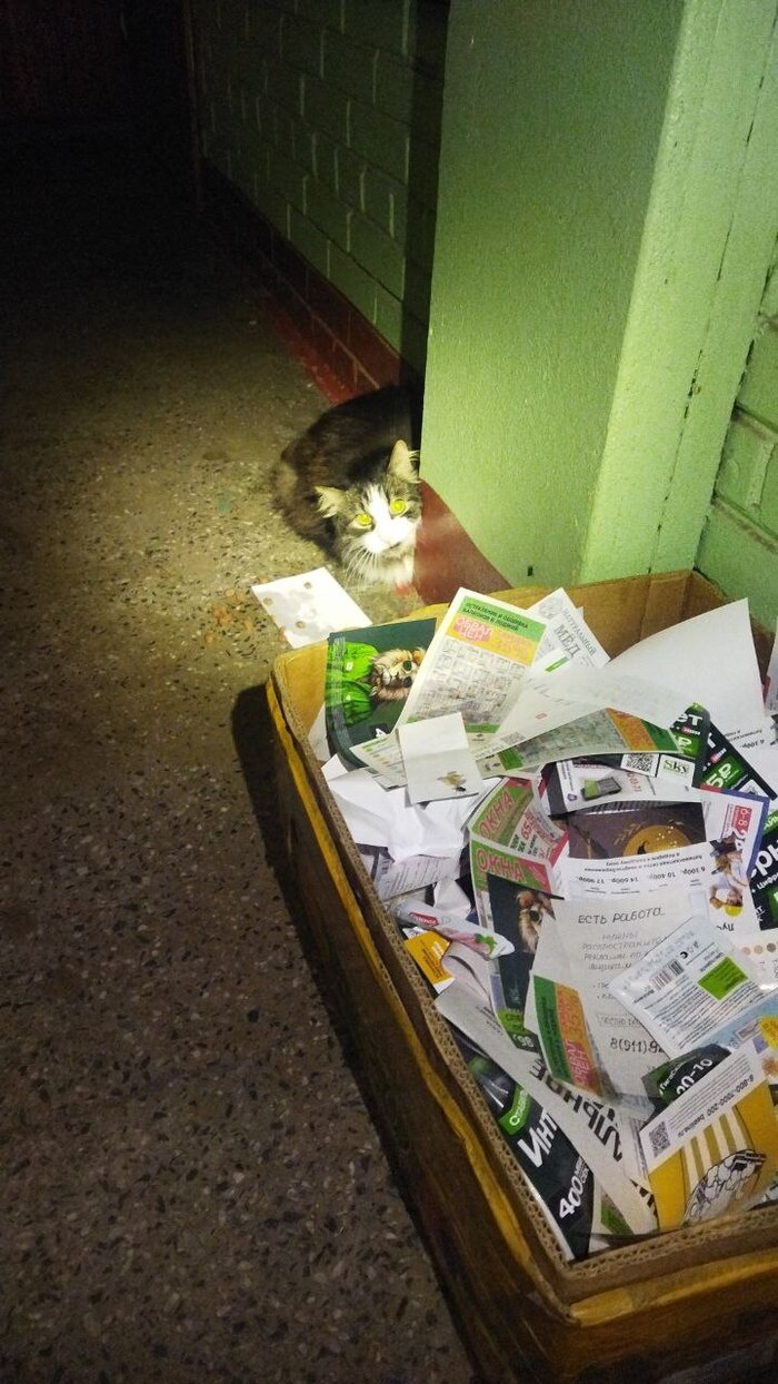 Найден кот. СПб, ул Белы Куна, 19 к 1. Сидел в подъезде, жался к двери. Опросили соседей, никто не знает, чей он. Появился сегодня.