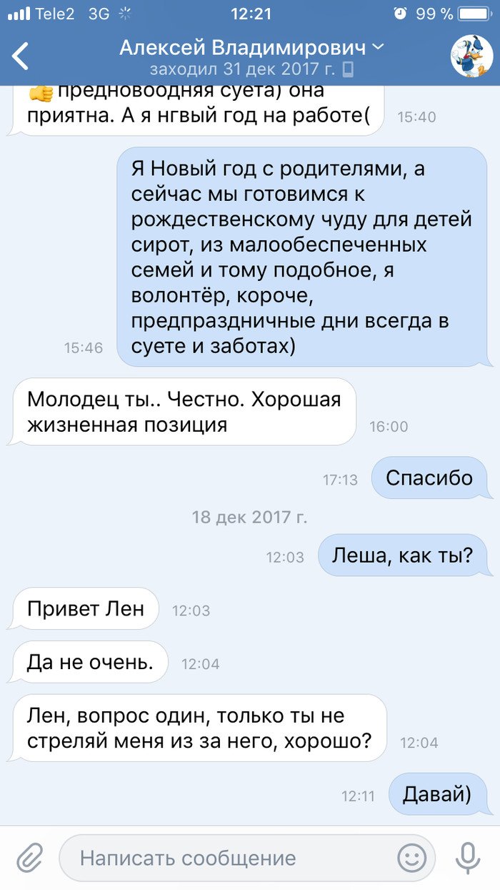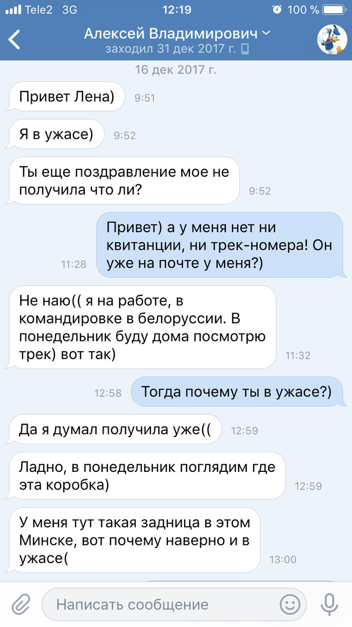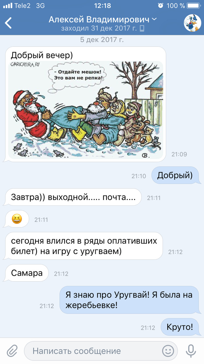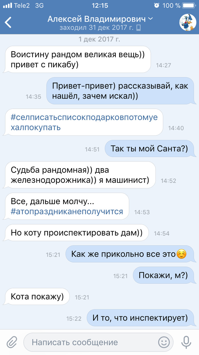 Приходит мне сообщение в контакте от некоего Алексея Владимировича с сообщением о том, что он с Пикабу и является моим Сантой. Я, естественно, отнеслась к этому нормально, обрадовалась и у нас завязалась такая тёплая ненавязчивая переписка.