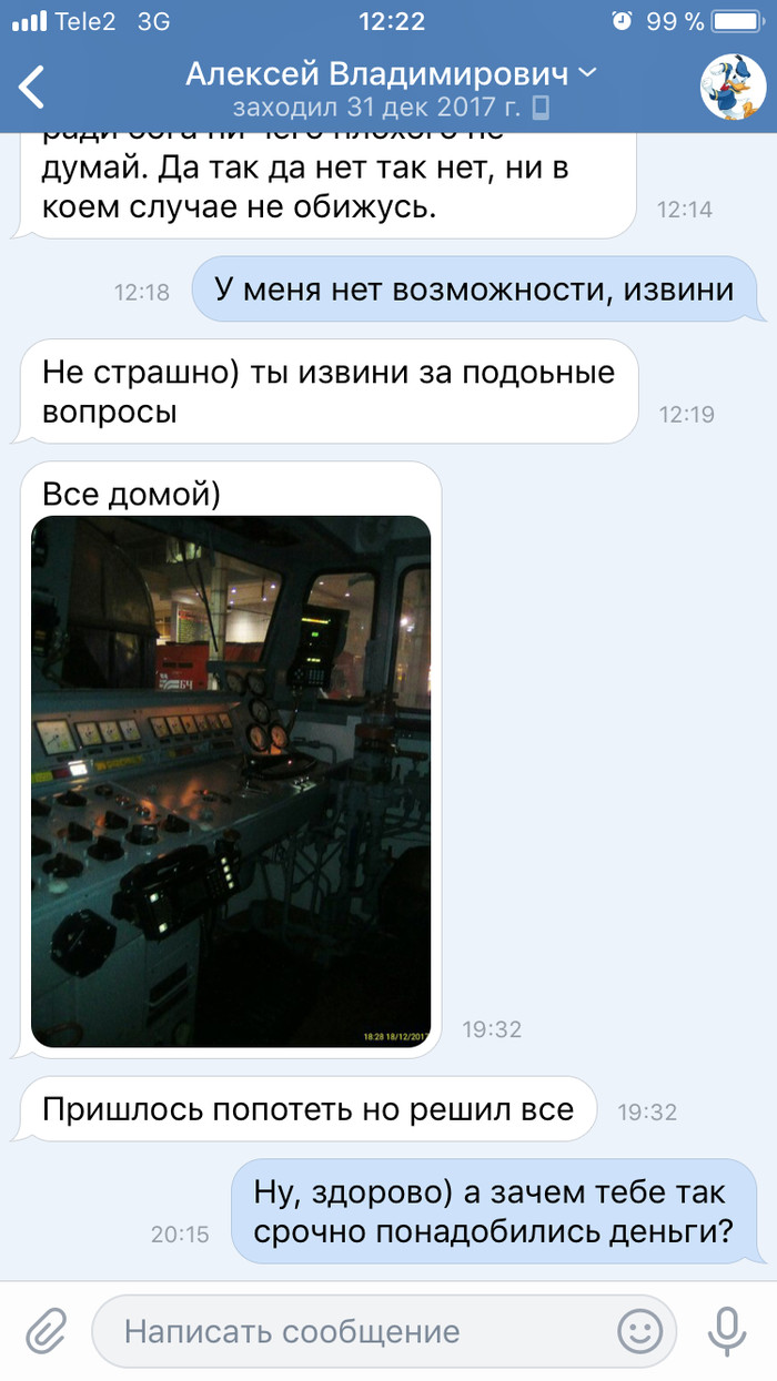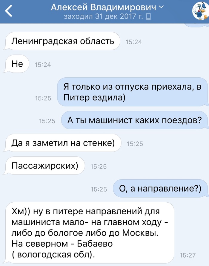 Дальше он написал, что живет в Ленинградской области и работает машинистом пассажирских поездов на главном ходу.