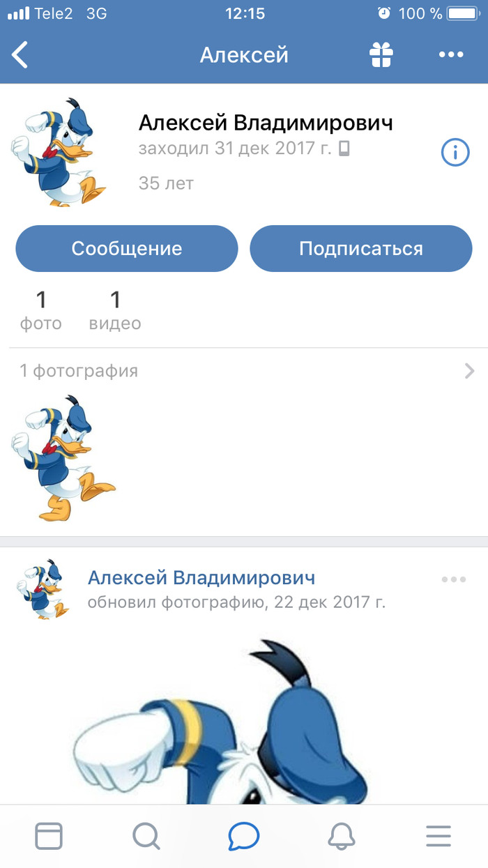 Немного удивилась, что страница фейковая и абсолютно пустая, но подумала, что он завёл ее специально для того, чтобы сообщить о подарке и не раскрывать свою личность, в чем, в общем-то, тоже нет никакого криминала (на скрине есть аватарка, но в момент общения ее не было, то есть страница была полностью чистая)