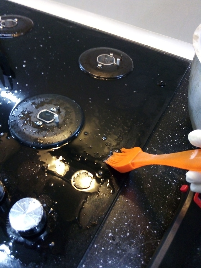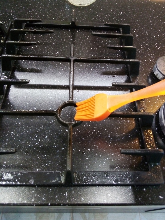 Жарила тут давеча мясо. Всю плиту забрызгало маслом. Вот прям вообще всю. Сразу что-то не помыла, забыла забила. Устала в тот день невероятно. И на следующий забила, но готовила. Чем засрала окончательно) Сегодня решила помыть. Встал вопрос как средство равномерно распределить по плите, ну и по труднодоступным местам тоже. Бросилась в глаза кухонная силиконовая кисточка. Эврика! Решила ей как курочку смазать всё что надо. Удобнюсенько оказалось. Средство для чистки плиты в стеклянной соуснице в одной руке, кисточка в другой и понеслось. Идеально! И решетки тоже ей мазала. Мне понравилось. Ну а что? Удобно, экономично и на лишнюю поверхность не капает ;) Придумала сейчас сама, поэтому тег моё. Не факт что кто-то до меня до такого не додумался.