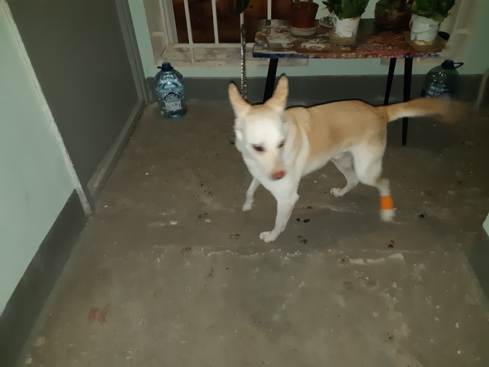 Сеголня ночью во дворе нашла собаку с ошейником, но без номера телефона. Видела её до этого несколько раз с хозяином, но где он точно живёт не знаю. У собаки была ранена лапа, сходила с ним в ветеринарную клинику, где рану обработали и сделали укол. Моя собака к нему настроенна агрессивно, поэтому пришлось его оставить сегодня на ночь в подъезде. Разместила объявления на сайтах о поиске животных, решила и сюда написать. Вдруг хозяин читает Пикабу. Мальчик, метис светло-рыжего цвета и небольшого роста. Прошу помощи с поиском хозяина или временную передержку, т.к. соседи нас завтра с ним попросят из подъезда(((