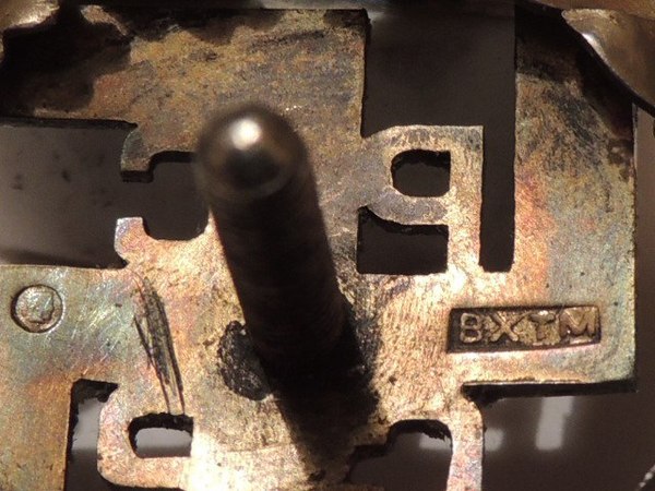 Версия 2. То, что вторая версия не состоятельна опровергает сам знак, а точнее его клейма(про поддельность клейм я молчу). На знаке есть клеймо "ВХТМ" - Высшие (Государственные) художественно-технические мастерские. Собственно говоря все - версия с частным заказом развалилась сама собой.