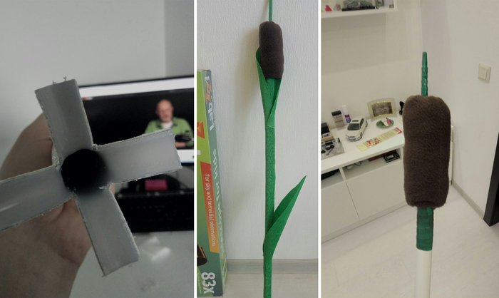Подставку решил декорировать травой и рогозом, загуглил как это делается и докупил трубы металлопластиковые, флис и синтепон для набивки.
