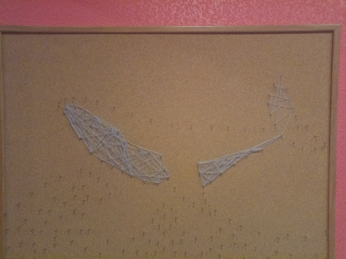 Купил для этих целей пробковую доску, нитей и гвоздиков. Набросал примерный план работы и приступил.