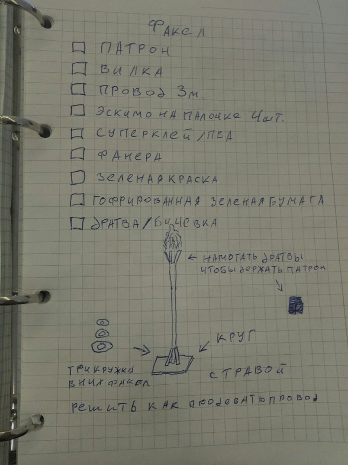 Всем привет. От самоизоляции уже ехала крыша, хотелось занять себя хоть чем-нибудь. Вдруг вспоминаю, что у меня без дела лежат факелы, которые брал в Глобусе пару лет назад. И еще дольше лежит лампа с али, которая имитирует огонь. Что ж, пора найти им применение.