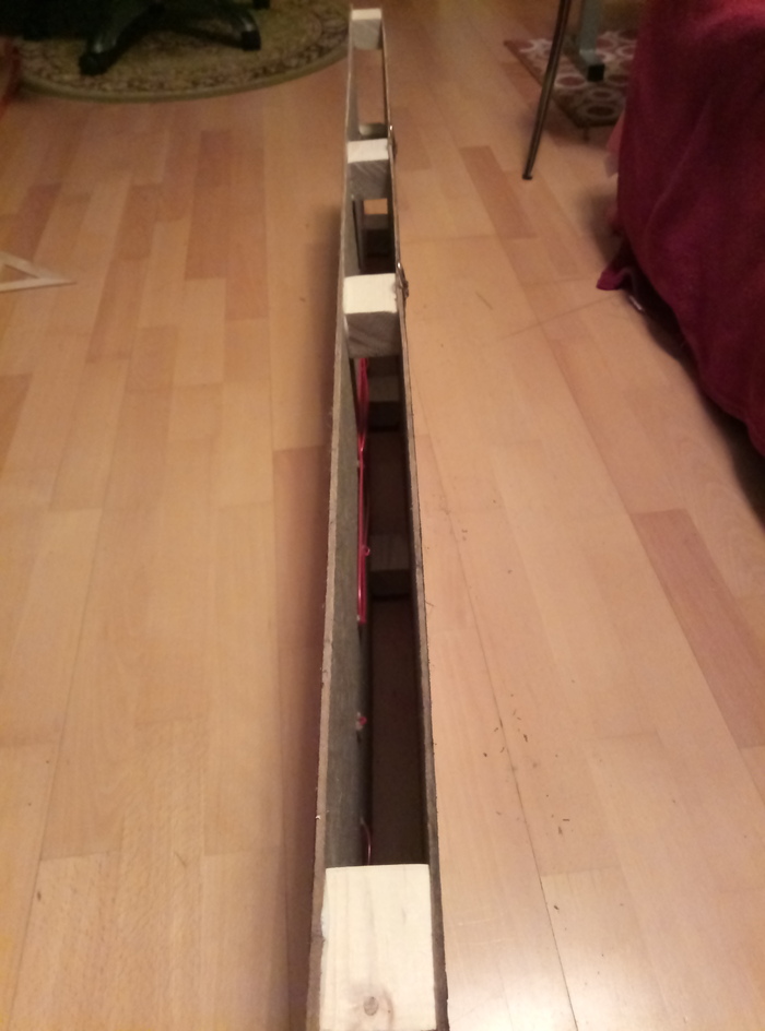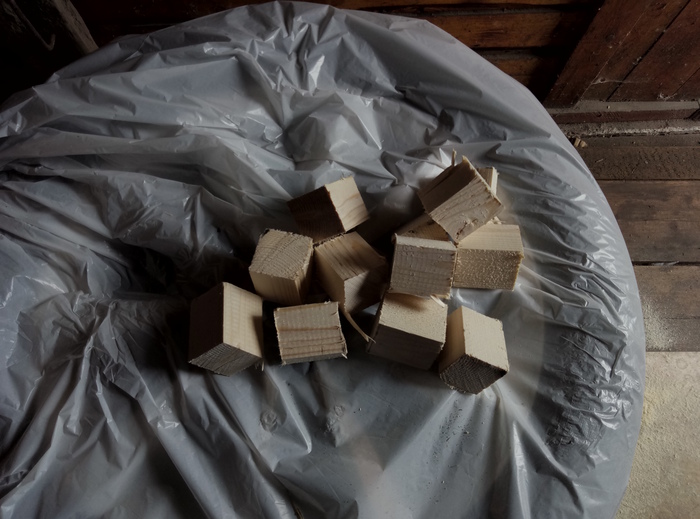 Связующим звеном двух панелей должны были стать кусочки бруса, который я попилил в гараже.