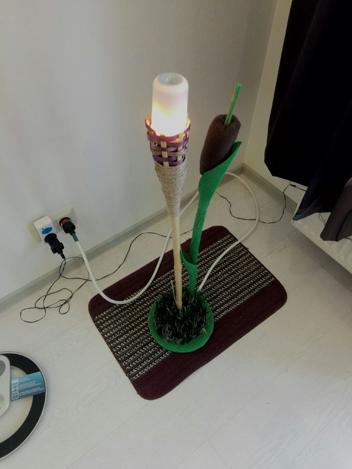 И вот такая в итоге получилась лампа. Теперь в планах купить пару пышных комнатных растений и обустроить живой уголок.
