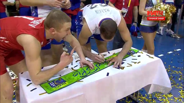 И, конечно, большое спасибо за победу Владимиру Романовичу Алекно, нашему замечательному тренеру, который вселил уверенность и веру в конечный успех нашей парней!