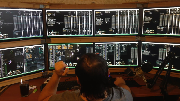 Это скрин из видео 7 летней давности, где игрок в EVE Online занимается майнингом (добычей ресурсов) одним из самых скучных времяпрепровождений в игре, но без которого не существовала бы экономика игры, т.к. большая часть предметов изготавливается самими игроками из добытых ресурсов.