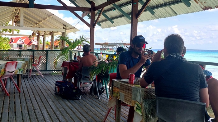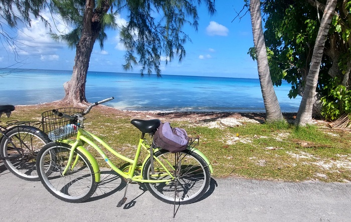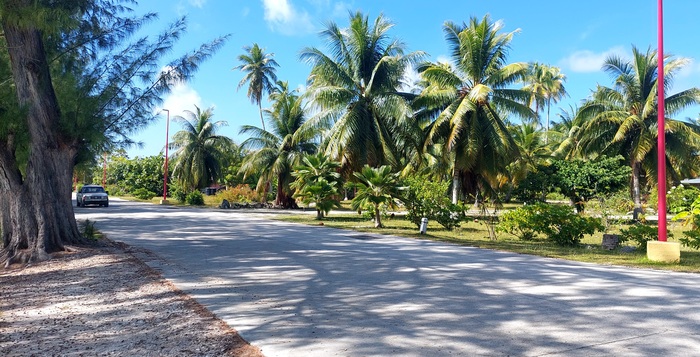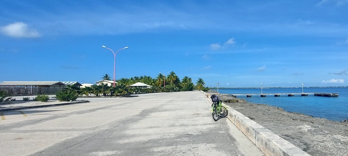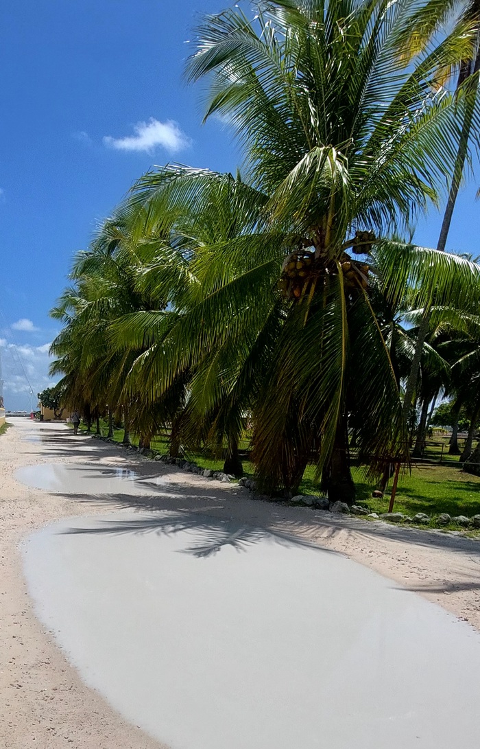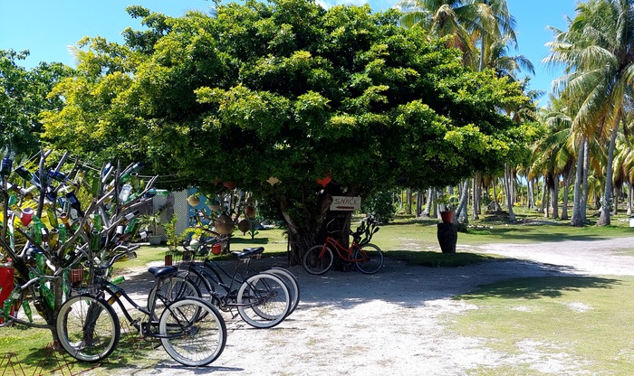 На Факарава есть всего одна дорога, больше тут не требуется, сам атолл а ширину всего 350-500метров, в длинная значительно больше , километров на 30 развернулась дорога. Мы решили взять велосипеды и исследовать атолл. Велосипеды 10евро за два за день, но какие! развалюхи старинные, ручки замотаны, передач нет, тормоз только педальный, на прямой поверхности больше и не надо, но все равно забавно
