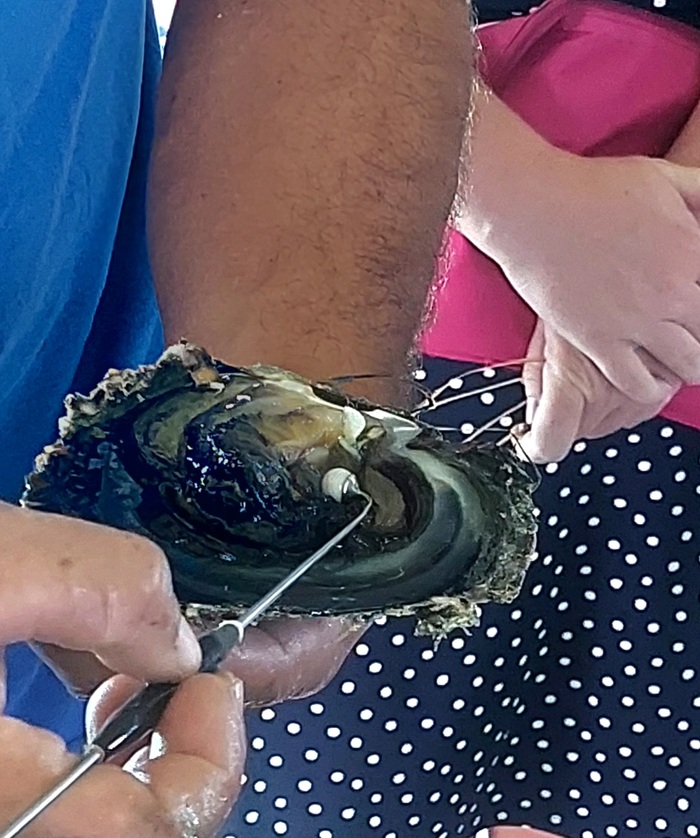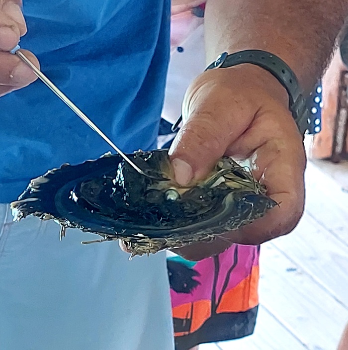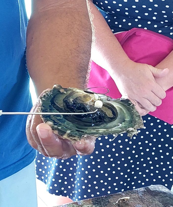 Специально для туристов открылся магазин местных рукодельников, и там продавали бижу из местного чёрного жемчуга, решила купить что-то простенькое на каждый день. Вот такой браслетик стоит в его 33евро=2640руб.