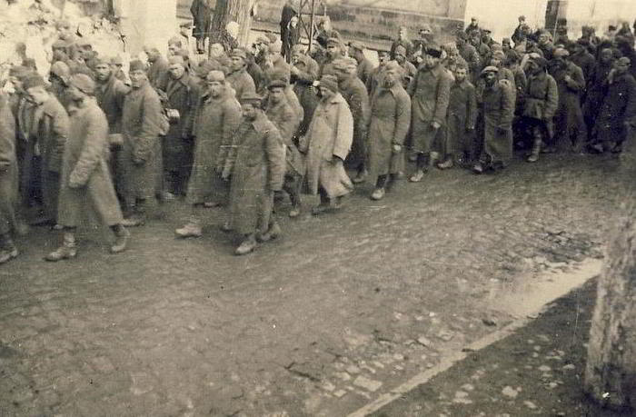 Сегодня был свидетелем такого случая. По Севастопольской улице четыре конвойных немца гнали человек около 100 свободно идущих пленных кавказцев и туркмен, взятых под Севастополем. Сзади этой группы два вооруженных немца вели между собой одного русского краснофлотца, со связанными сзади в локтях руками. Для нас, наблюдавших эту сцену, было ясно, что первые без сопротивления сдались немцам в плен, а русский краснофлотец взят с боя и даже в плену опасен победителям.