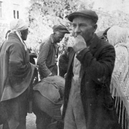 Я был не особенно поражен виденным: мало ли я наблюдал зверств и горя за это время. Следуя за ними, я наткнулся на женщин нашего двора. Они стояли по двое, обнявшись, что меня очень удивило, так как женщины нашего двора постоянно грызутся между собой как собаки. Все они плакали и смотрели на подконвойных. «В чем дело?» — спросил я. «Это немцы потащили еврейского ребенка на казнь. А с ним идут дедушка и бабушка, не хотят его отдавать. Да как не отдашь? Все равно заберут силой». Я был расстроен. Подумать только — только расстроен! До чего же огрубели наши чувства, что даже такой чувствительный человек, как я, только расстраивается от зрелища казни немцами русских (полуеврейских) детей.