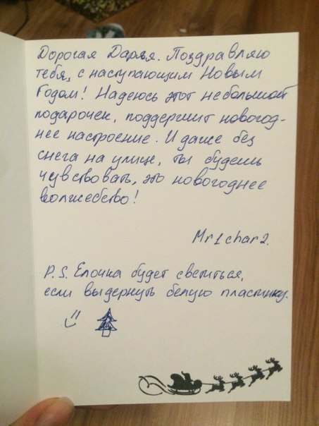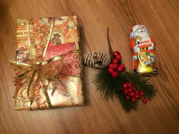 Последние дни перед праздником я ходила как грампи кэт - сессия не задалась и новогоднего настроения не было совсем. К тому же, ежедневная проверка почтового ящика в ожидании уведомления не давала результата. И вот, вчера я пришла домой и сразу получила втык от домашних, что если я что-то заказывала, надо предупреждать, потому что они весь вечер ждали, что коробка взорвется. Только вот я ничего не заказывала и сразу поняла, что это мой тайный санта постарался, и просто коробочка была отправлена не Почтой России. Самые любопытные сразу бросились вскрывать коробку:)