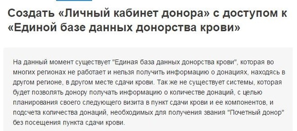 В век информационных технологий очень удобно было бы иметь приложение или личный кабинет, которое напоминало тебе о возможности сдачи крови (ведь есть временные ограничения), ближайший пункт сдачи крови и возможность например записаться на определенное время. Поэтому, считаю это важной инициативой и прошу Вас за неё проголосовать (к слову сам очень сожалею, что не могу сдавать кровь (астма)), но хоть так внесу свой вклад.